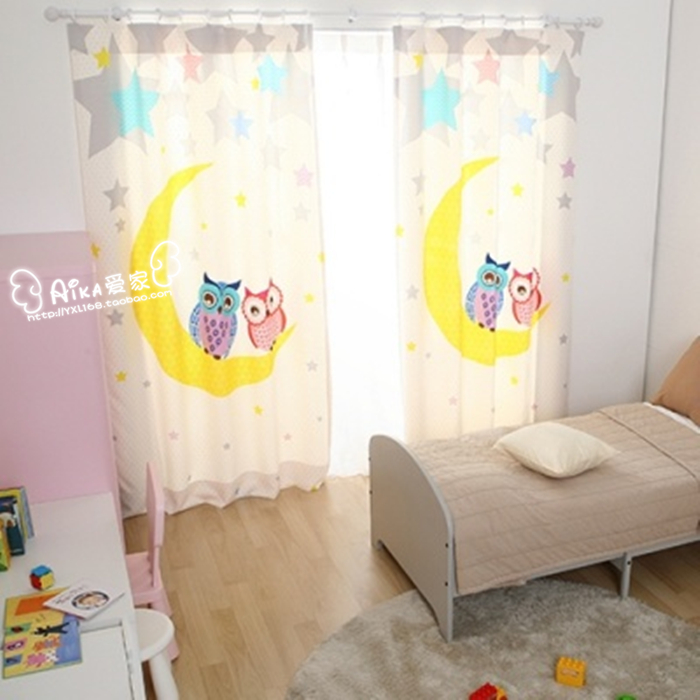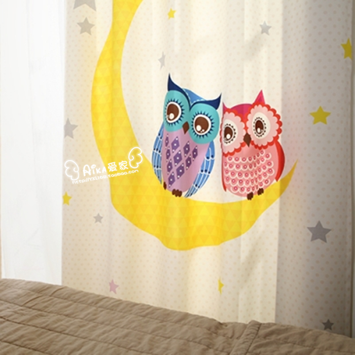 Special price Aika Aijia Korea cute cartoon owl Kindergarten Children's room Living room Half shading curtains-Taobao