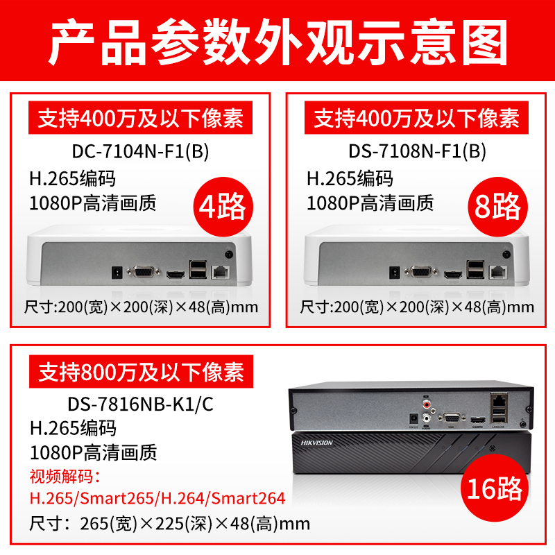 Hikvision 4-way hard disk recorder HD surveillance host 265 storage halve mobile phone remote 7104N-F1
