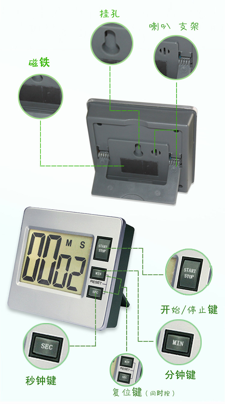 Simple large-screen magnetic suction electronic digital kitchen timer student reminder clock sports beauty salon timer