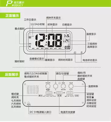 Smart charging time music alarm clock creative luminous silent children student electronic watch snooze bedside seat clock