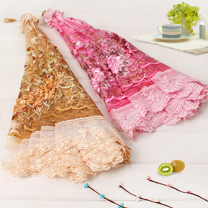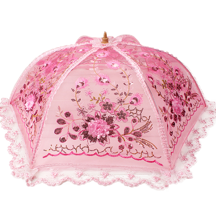 Cover Vegetable Hood Eu Type Lace Pearl Pieces Embroidered Food Hood Upscale Folding Dish Umbrella Anti Fly Hood Rice Dish Hood