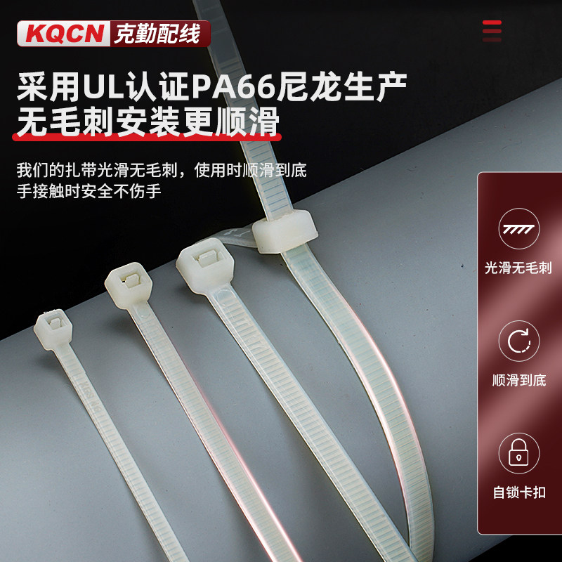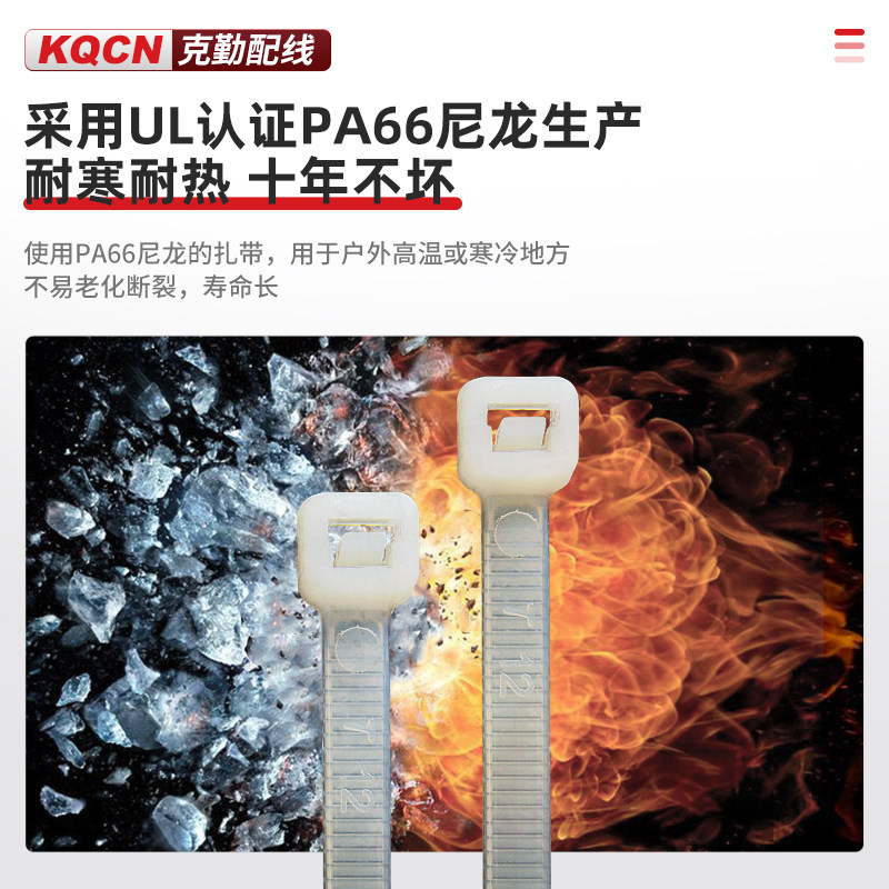KQCN Crew straps adopt the brand new PA66 nylon production can be continuously white 2 by hand with the specifications of the low temperature test 20 °C 3 6mm and above