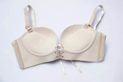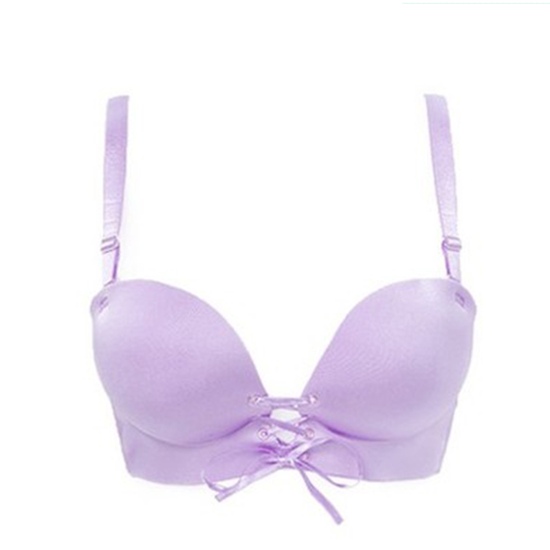 Glossy gathered straps without steel ring deep V sexy lace-up underwear bra flat chest thick mold cup double shoulder strap stereotypes