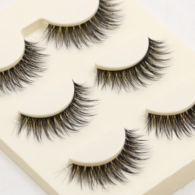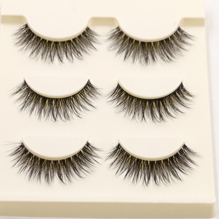 Pure handmade 3D three-dimensional false eyelashes natural thick long version no trace transparent stem 3 pairs of glue 25