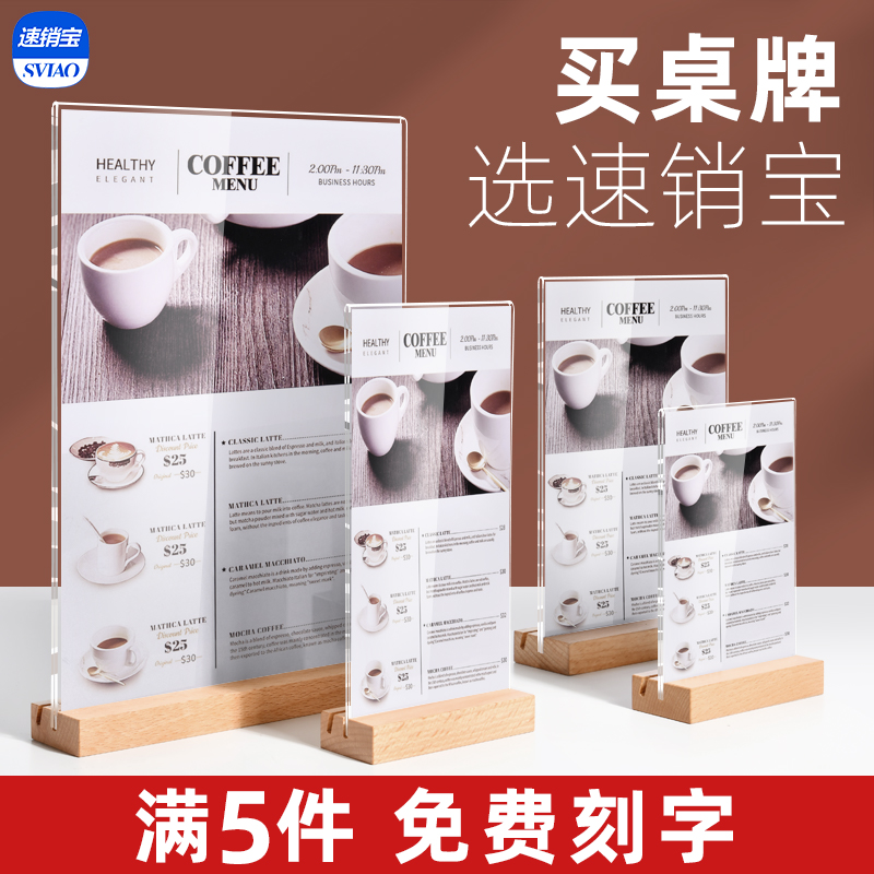 sviao speed pin treasure a4 acrylic table card solid wood table cards menu customized display cards double face table wine water plate price table design billboard milk tea shop point dining card double face a5 swing table