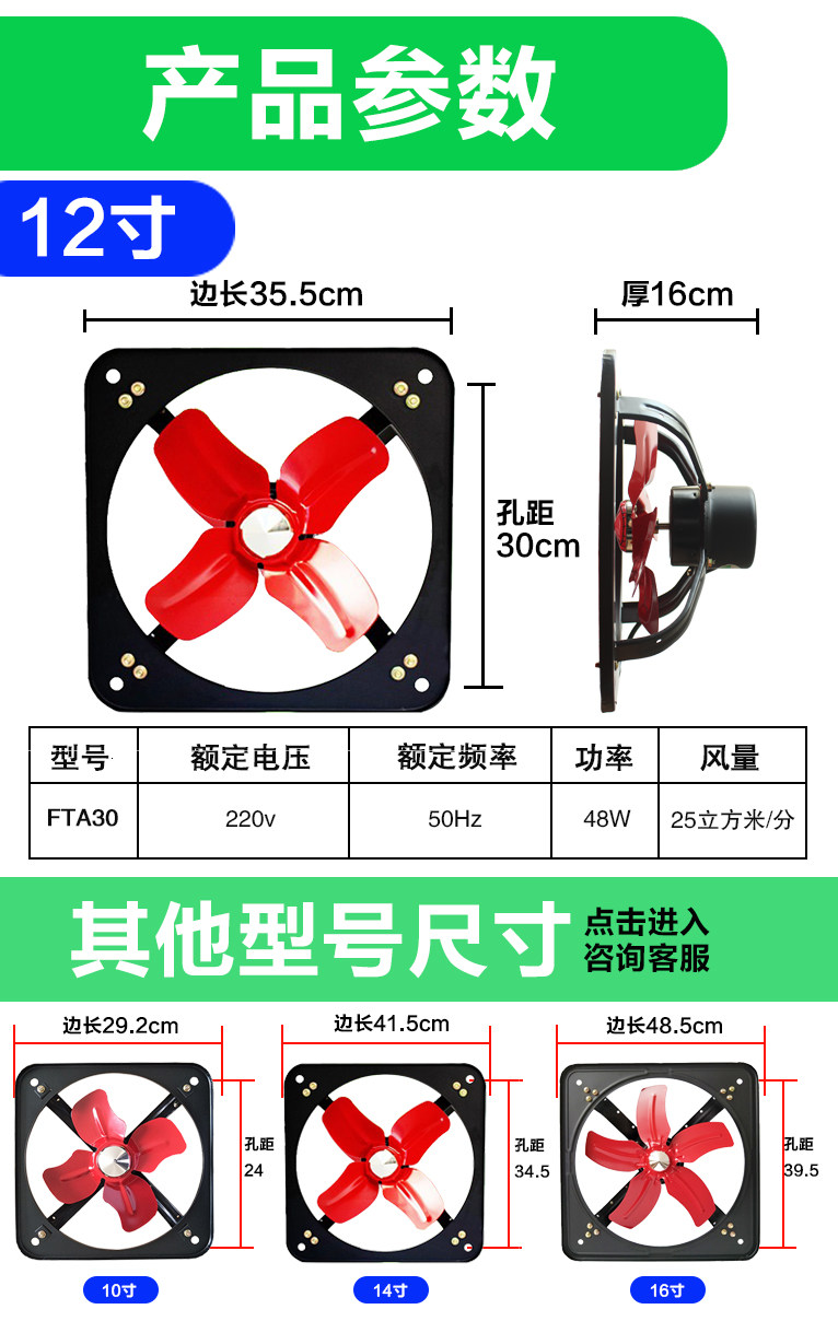 Exhaust fan Ventilation fan Powerful 12 inch household bathroom exhaust fan fume fan Kitchen industrial window exhaust fan