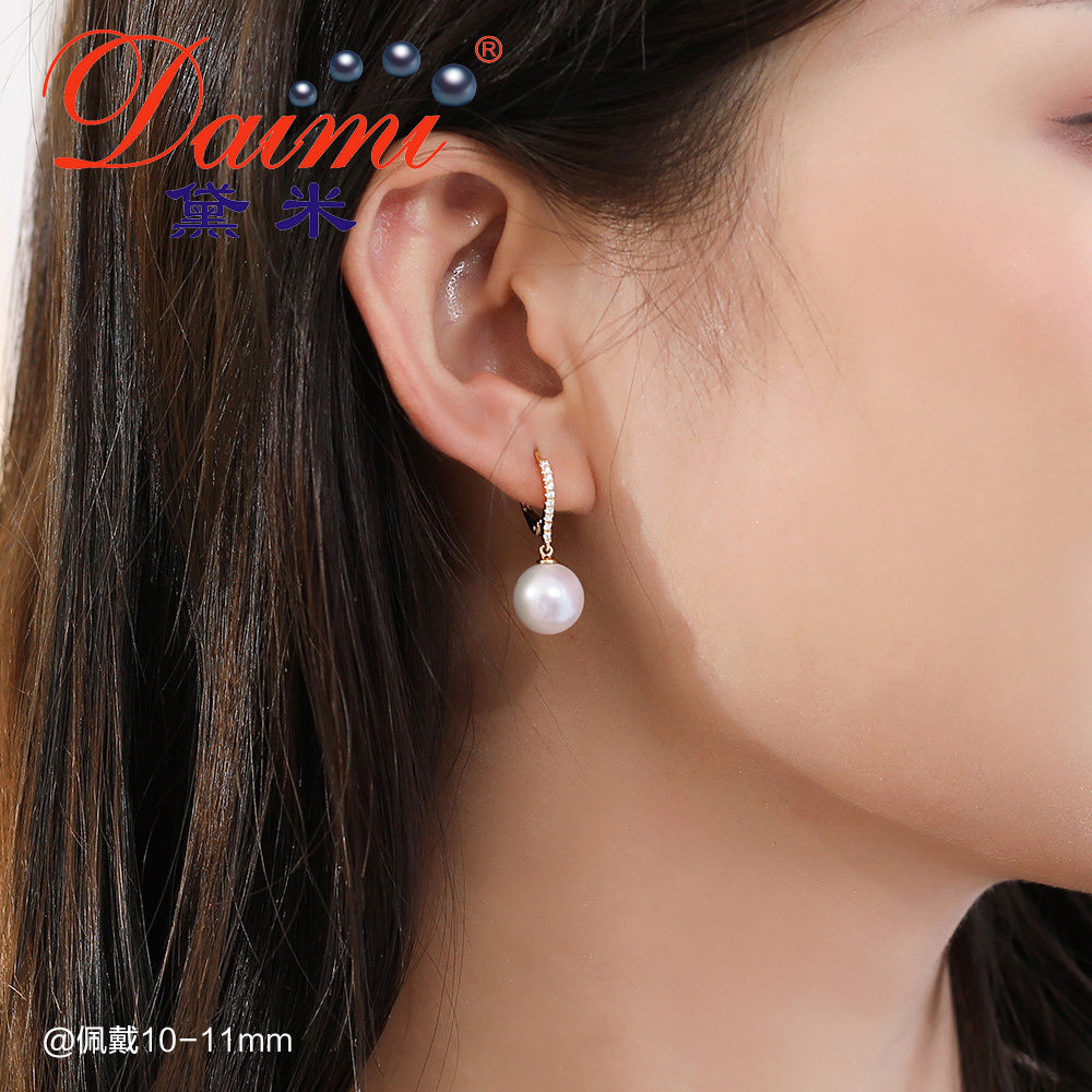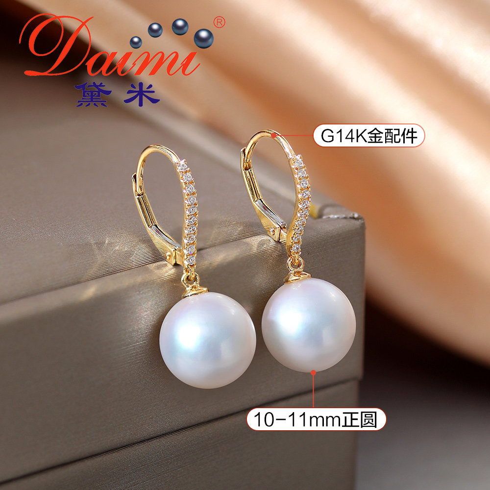 Demi solid Jing 10-11mm round large white freshwater pearl earrings women G14k gold ear rings long version drop earrings