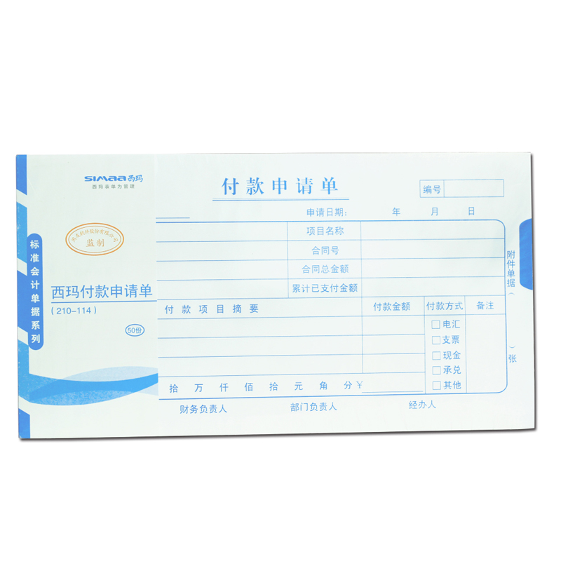Xima X1-SS011510 payment application form financial special list accounting single form 210-114