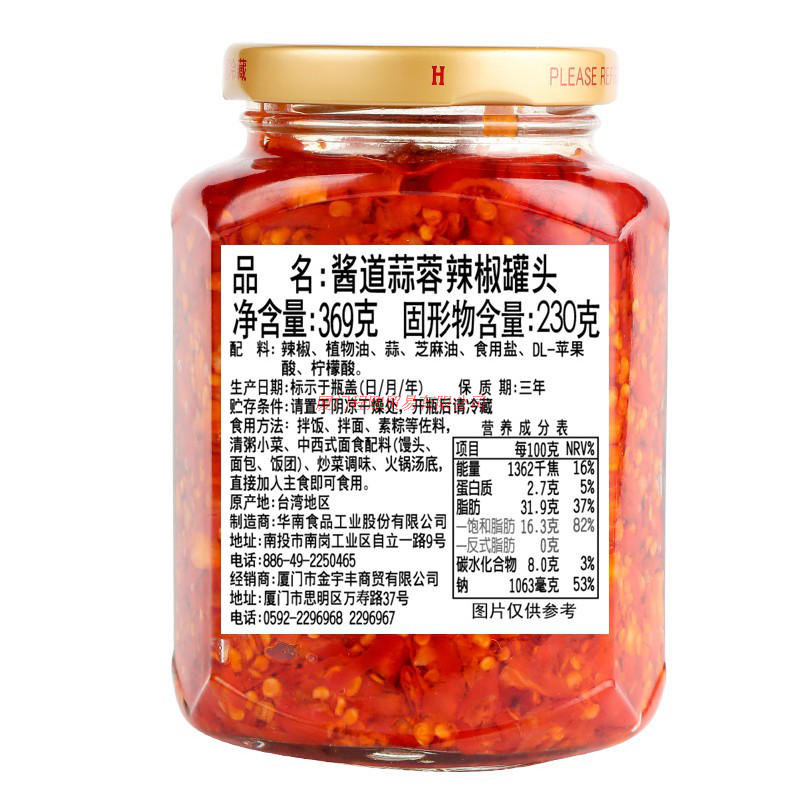 Taiwan garlic chili sauce imported South China sauce road garlic fresh chili king 369g specialty super spicy gourmet bibimbap sauce