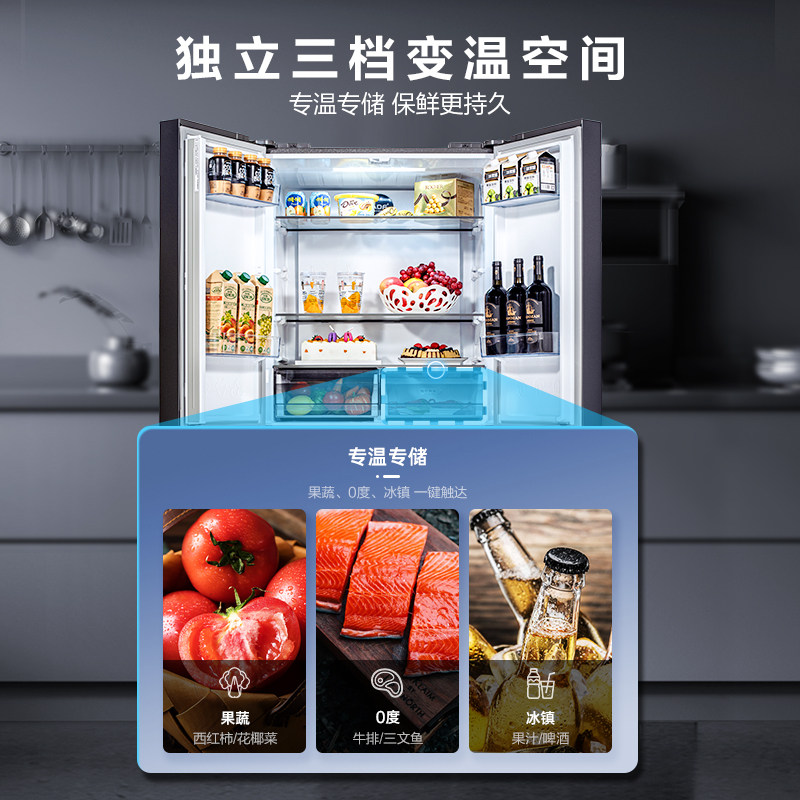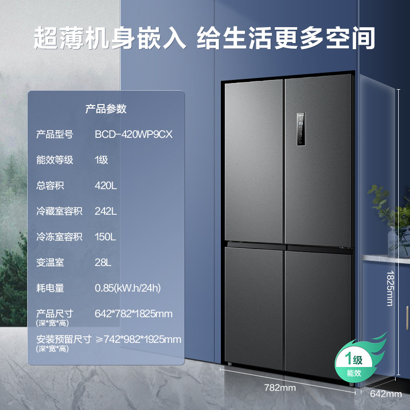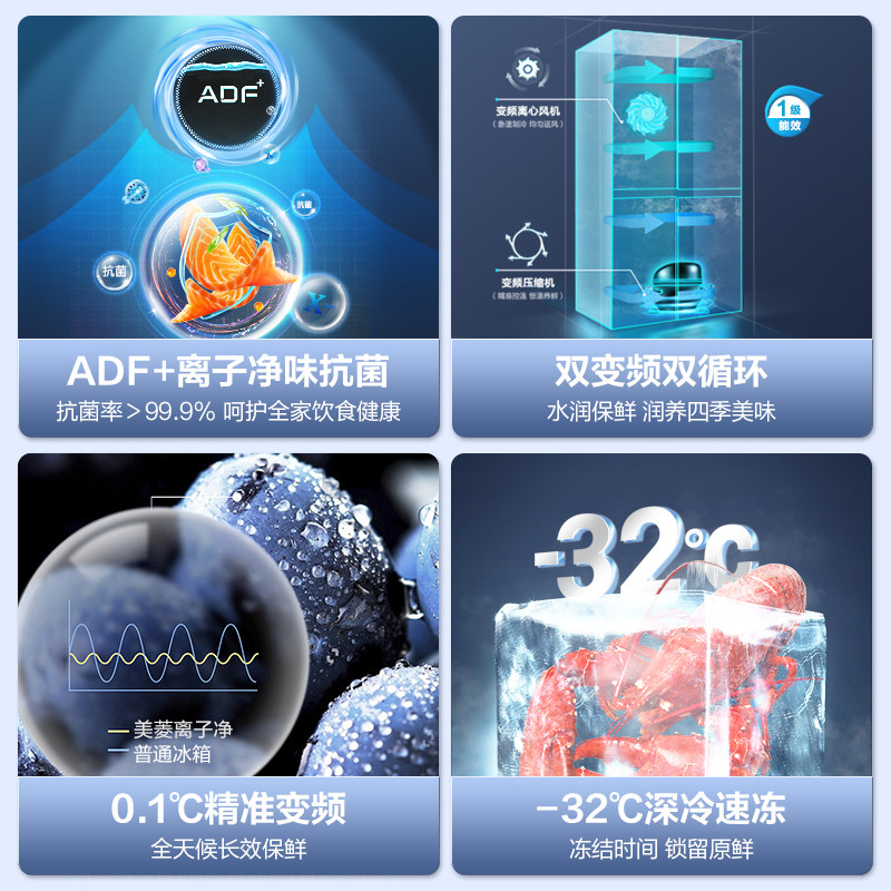 Ion net Meiling 420L cross four-door frost-free first-class energy-saving inverter household large-capacity ultra-thin refrigerator