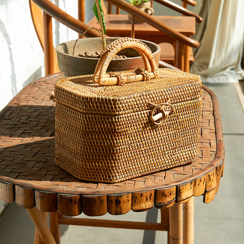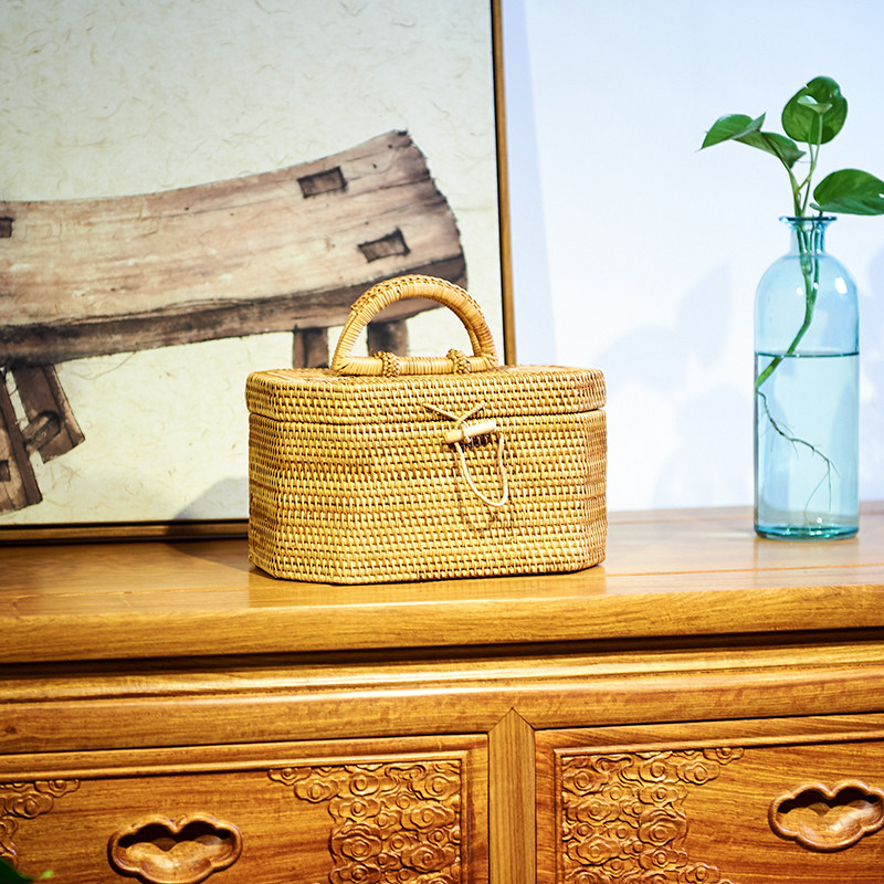 Vietnamese autumn rattan storage box portable cosmetic box jewelry box with handle octagonal gift box rattan box