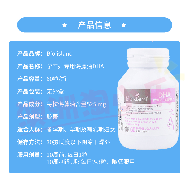 Australia Bio Island Pregnancy Pregnancy Special DHA Seaweed Oil Capsule Fetal Eye Brain Gold