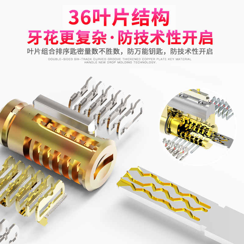 Meilibao lock core anti-theft door Household super B class C class 36 blade door copper lock core colorful series