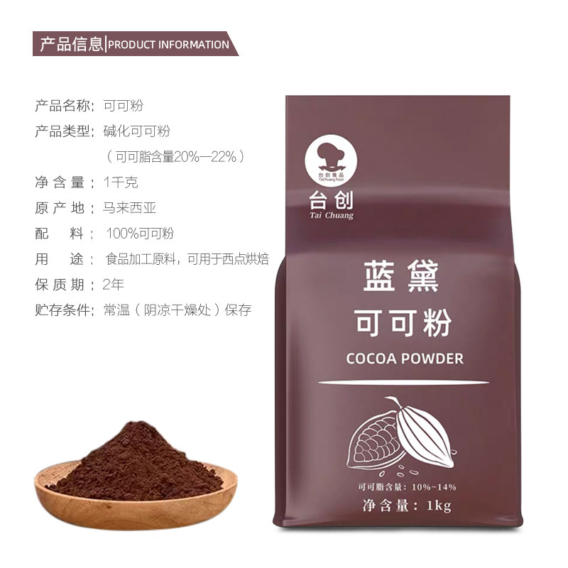 Blue Dei High Fat Cocoa Powder 1kg Packs Deep Black Cocoa Powder 1kg Packs Moisture-Proof Cocoa Powder 1kg Pack (large package) Blue Deb High Fat Cocoa Powder 5kg Pack