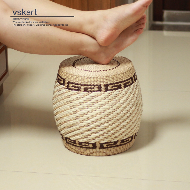 Solid wood straw chedata garden living room round stool changing shoes stool tatami round drum sitting stool small stool short stool mound sofa stool