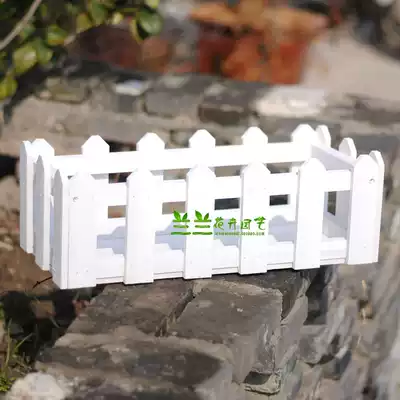 White fence pot flowerpot rectangular flower slot pointed anticorrosive flower box wooden wall-mounted balcony railing flower stand basket