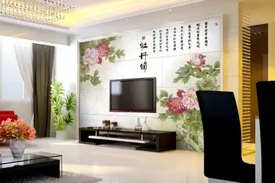 Chinese ceramic tile background wall flower modern living room TV background wall tile peony mural picture rich peony ode