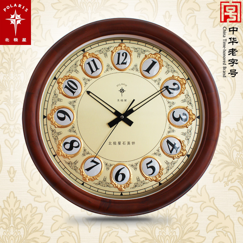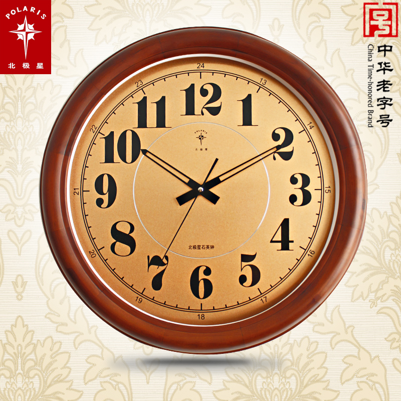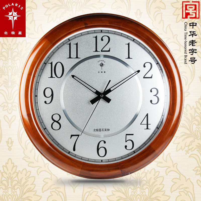 Polaris 19 inch fashion simple clock atmospheric elegant solid wood creative wall clock Chinese quartz clock