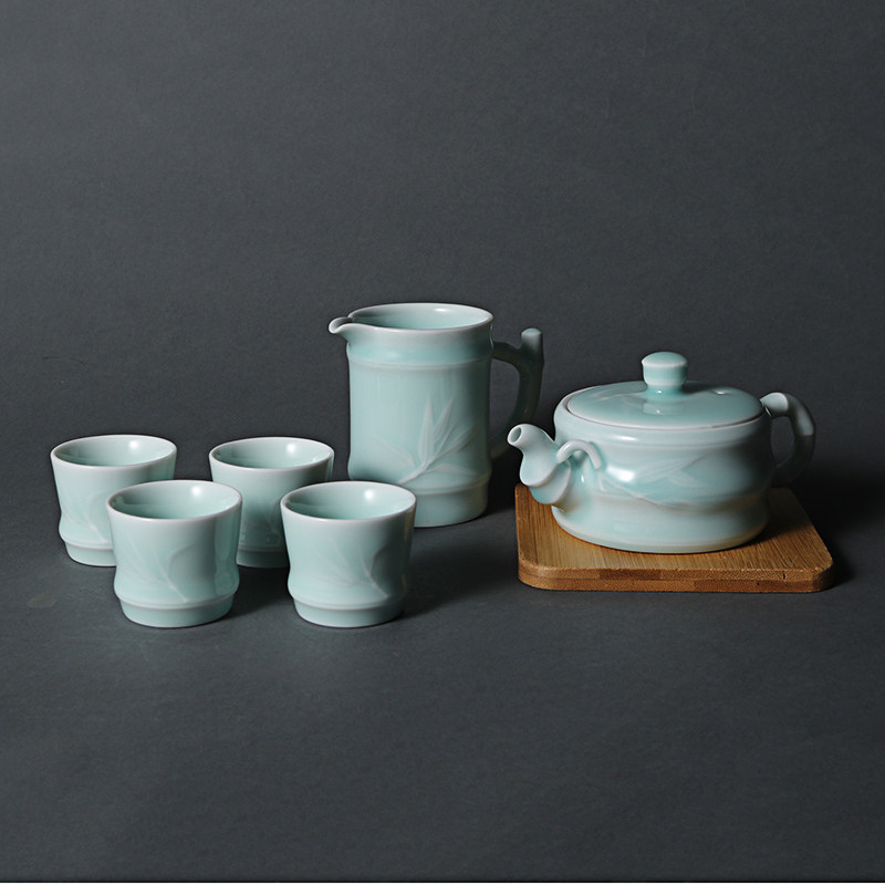 Shanglin Lake Yue Kiln Celadon Bamboo High Tea Set Kung Fu Tea Set Six-piece Wooden Gift Box