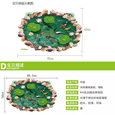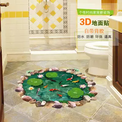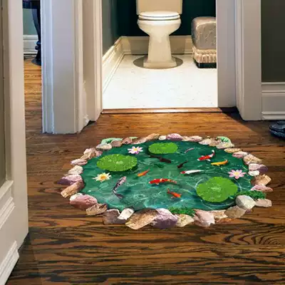 Imitation 3D effect dressing room bathroom door waterproof floor decoration stickers lotus pond floor stickers