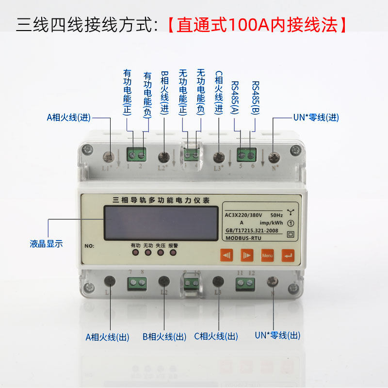 Three-phase liquid crystal rail multifunction 1 5 (6) A three-phase liquid crystal rail multifunction 10 (50) A three-phase liquid crystal rail multifunction 20 (100) A three-phase liquid crystal energy meter 1 5 (