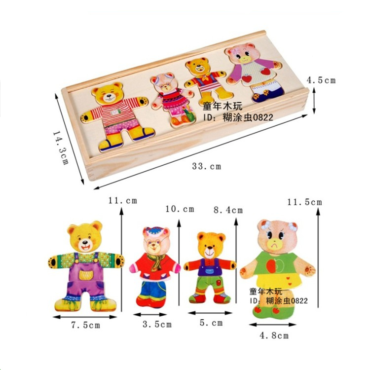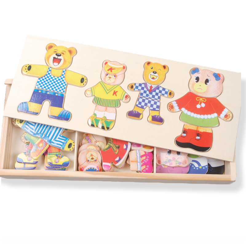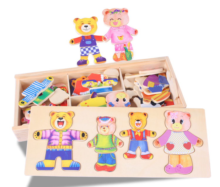 Wooden baby children bear dress up boys and girls Baby puzzle three-dimensional puzzle building block toys 1-2-3-4 years old