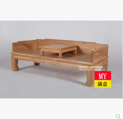 Slow life tea furniture old elm luohan bed solid wood bed bed Ming-style furniture environmental protection paint-free
