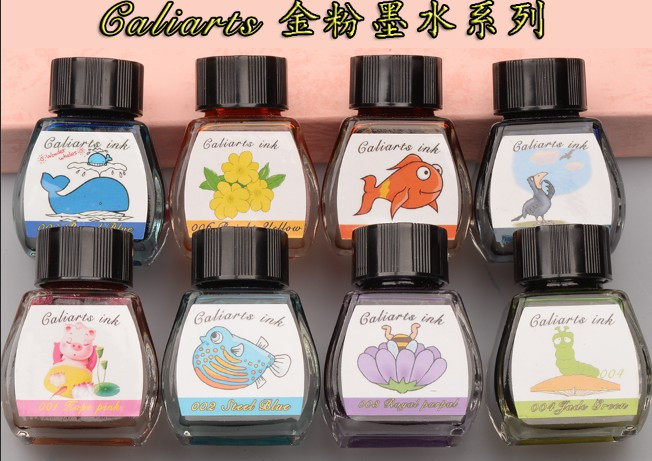 Gold powder pen ink non-carbon dye type color gold powder ink glass bottle hardcover version