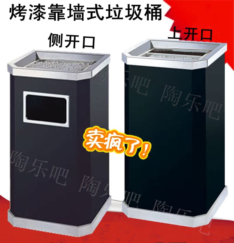 Side opening black wall-mounted trash can Top opening black wall-mounted trash can Side opening beveled black striped trash can Top opening beveled black striped trash can