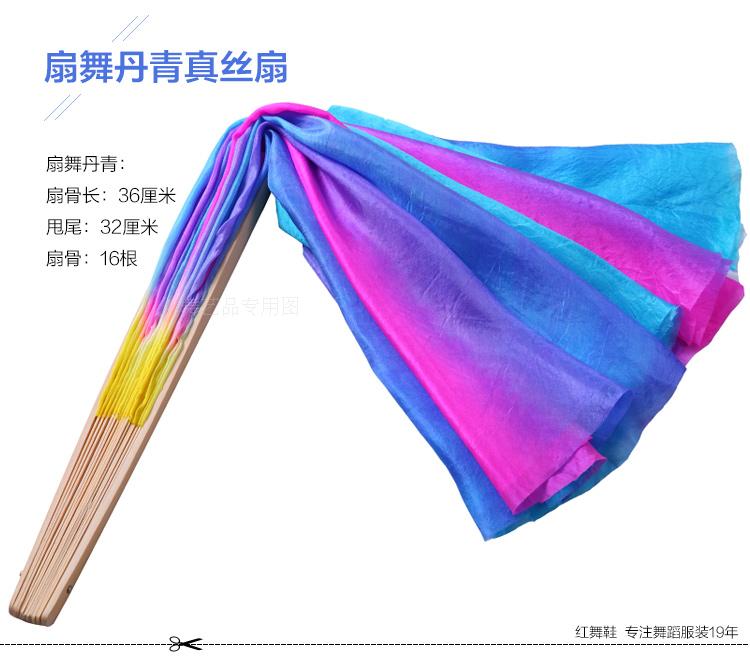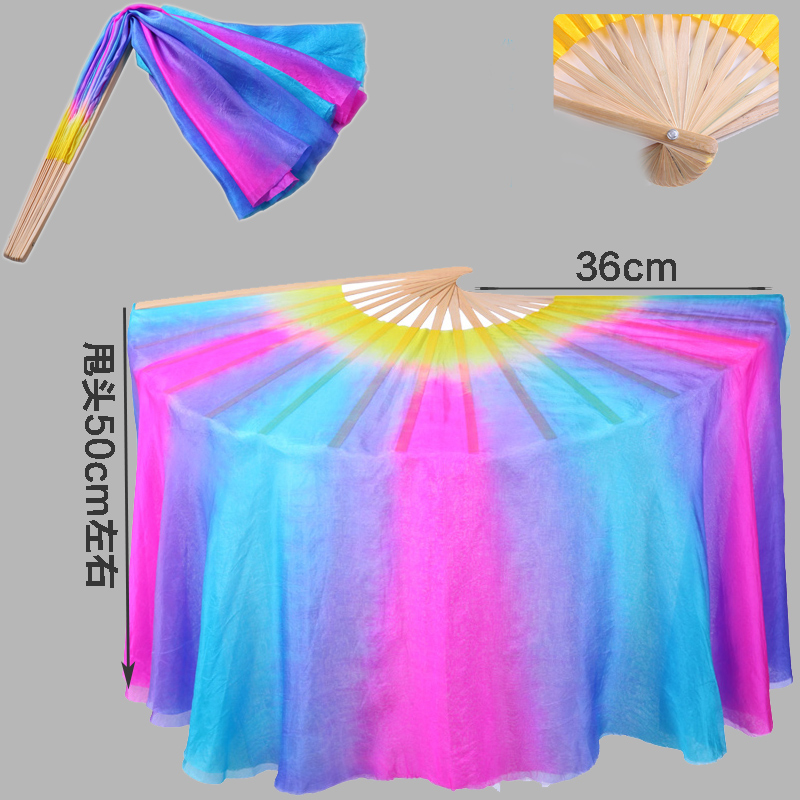 Fan Dance Danzing Real Silk Fan Bifacial Multicolor Dance Fan Lengthened Rice Dancing Fan Classical Dance Fan