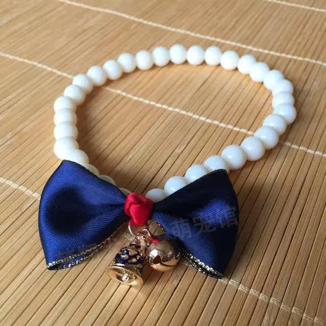 Teddy Poodle Small Dog Bichon Pomeranian Handmade Bowknot Bell Beaded Pet Dog Cat Collar Neck