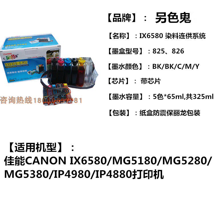 Original color ghost IX6580 continuous ink supply system for Canon Canon IP4980 ink supply system 825 826 ink cartridge