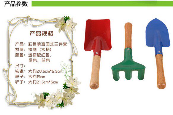 Gardening tool set Shovel rake iron rowan 3-piece set Beach toys Raise flowers grow vegetables direct sales