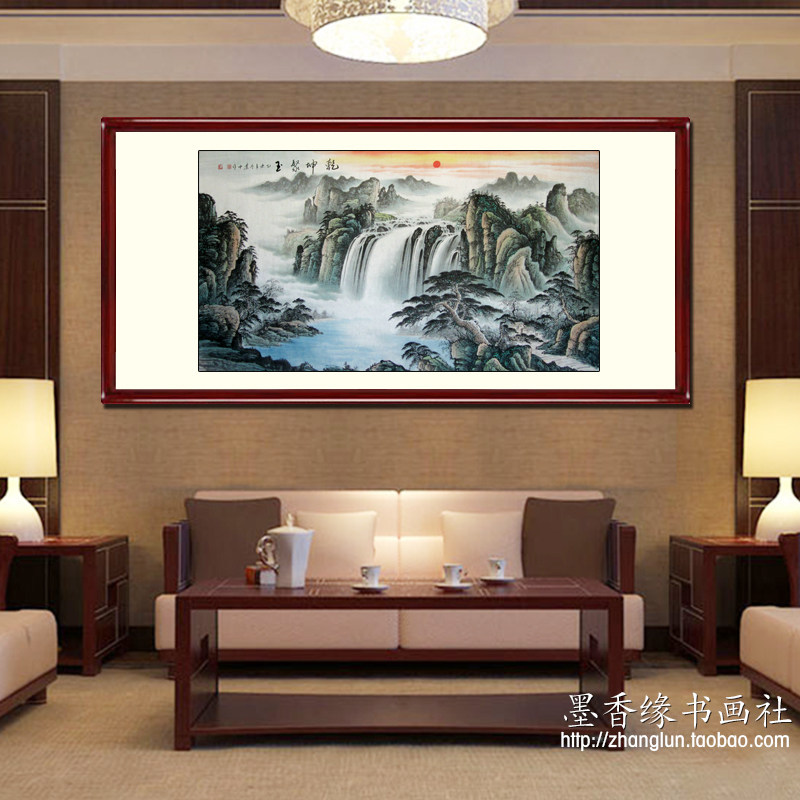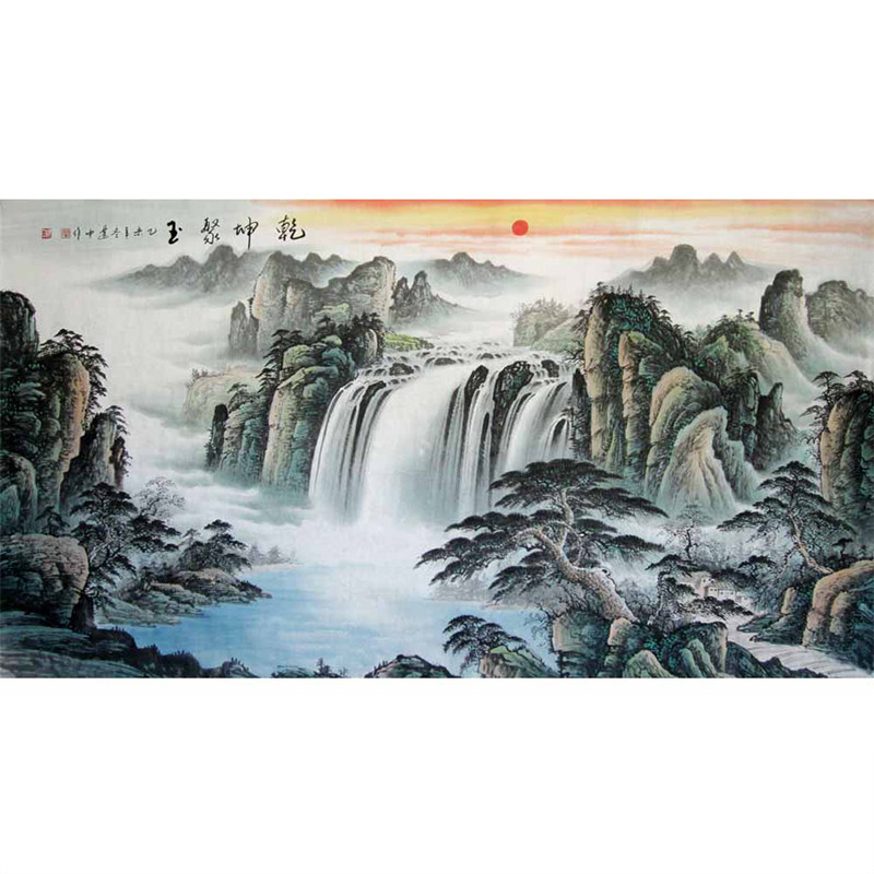 Jiubao basin Great Falls Guo Painting Landscape Paintings Sino-American Concord Pure Hand Paintings True Sign Living Room