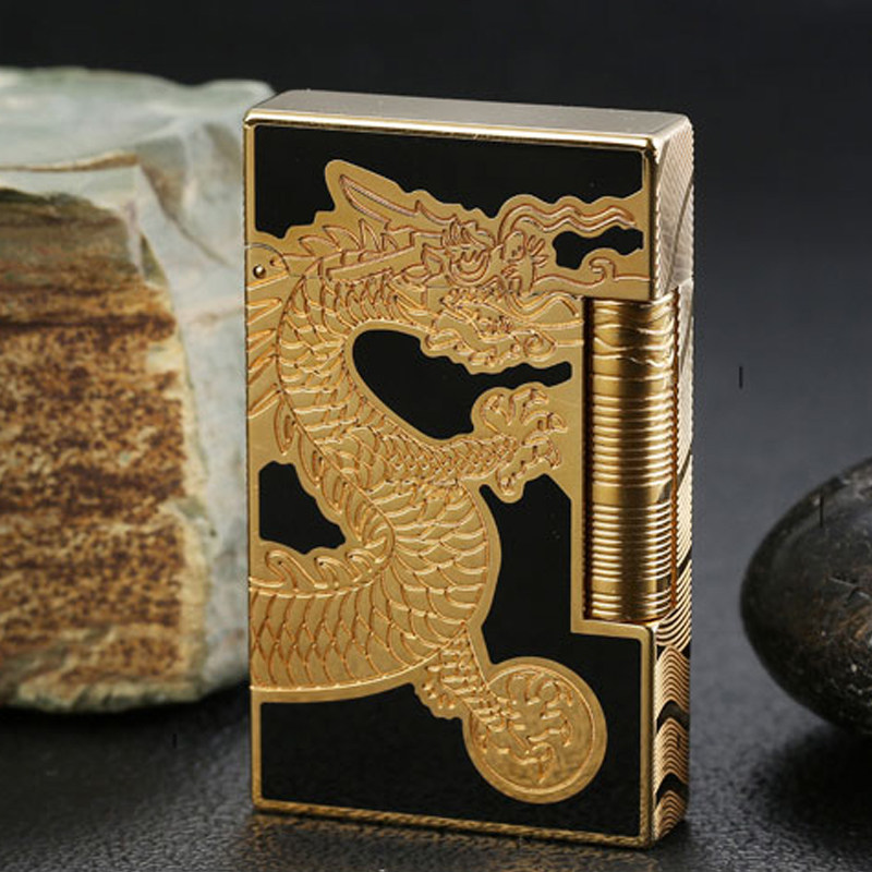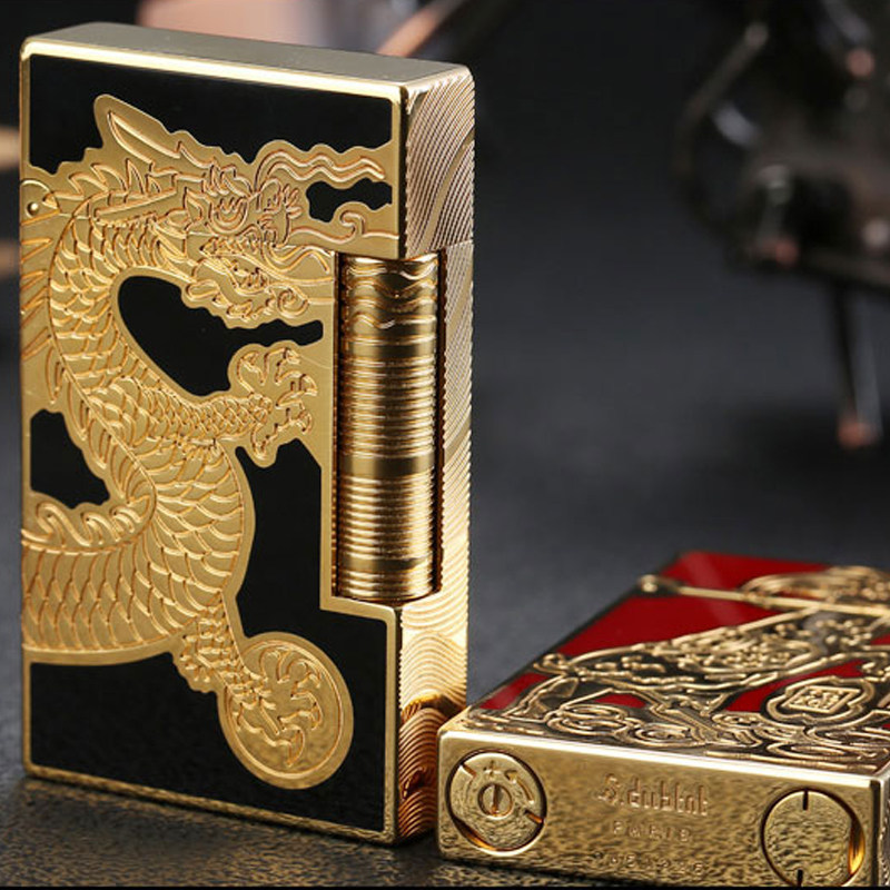 S. Dubnt French Dubert Inflatable High end Langsheng Lighter Pure Brass Boutique Dragon 24K Gold Plated