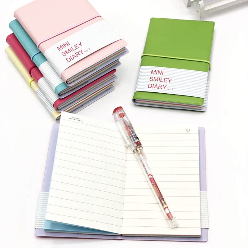 Korean stationery candy color portable notebook mini smiling face leather minimalist notepad student little benson