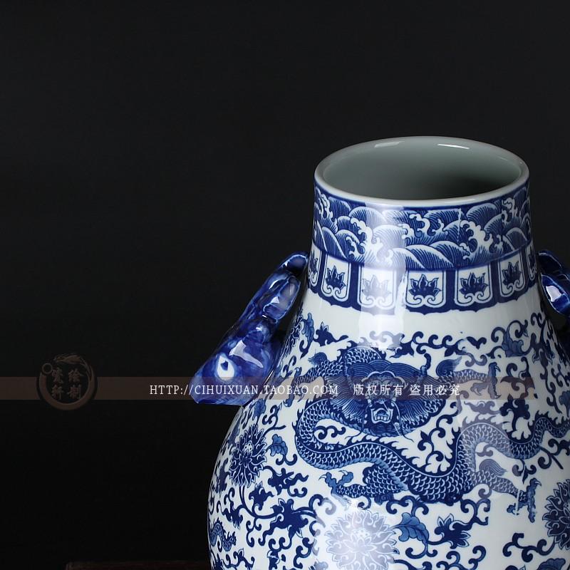 Jingdezhen Ceramic Ware Green Flower Porcelain Vase Glaze Lower Color Double Ear Dragon Tattooed living room Home Decorative Items Swing pieces