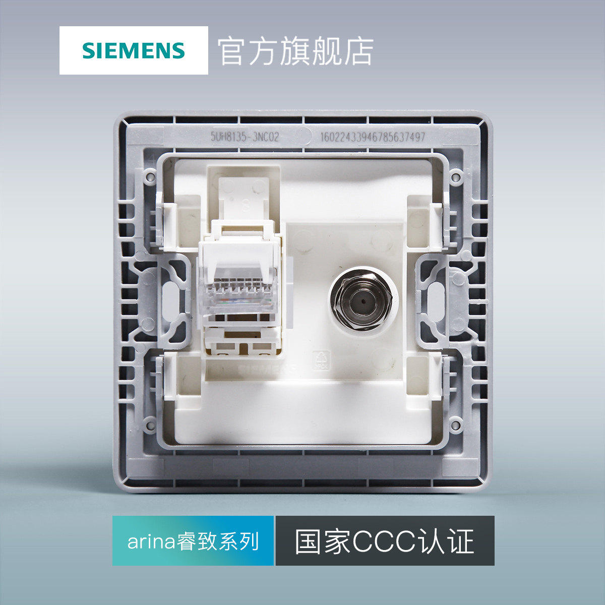 Siemens switch Ruizhi titanium silver bezel 86 two-digit TV computer five types of socket official flagship store