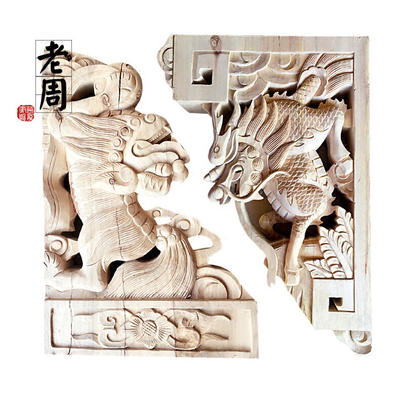 New Products Dongyang Wooden Sculpture Chinese Dragon Solid Wood Garden Temple Ancient Bull Leg