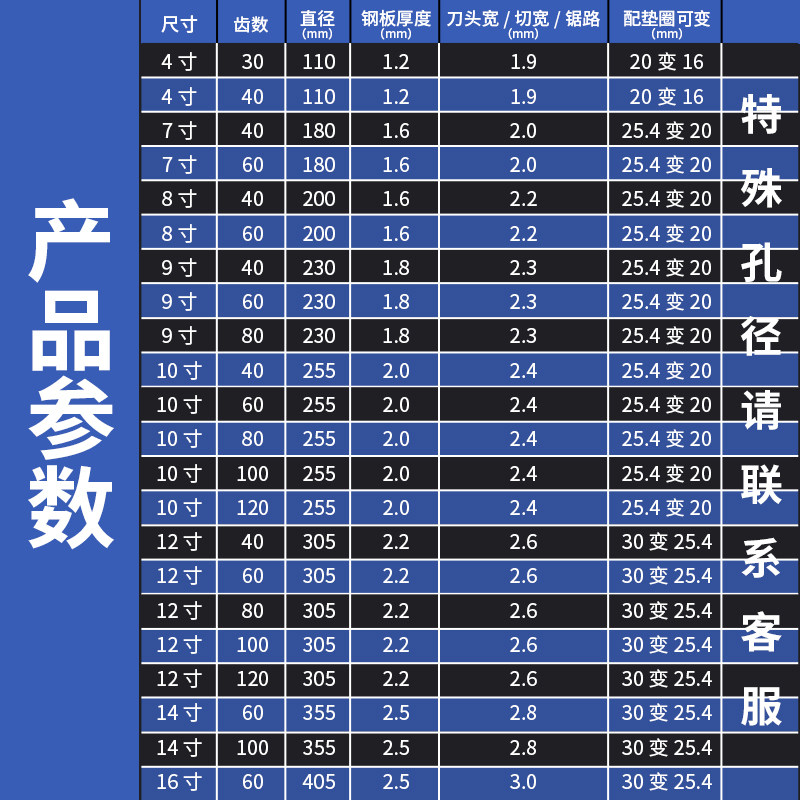 4 inch(110MM)×30T4 inch(110MM)×40T5 inch(125MM)×40T6 inch(150MM)×40T7 inch(180MM)