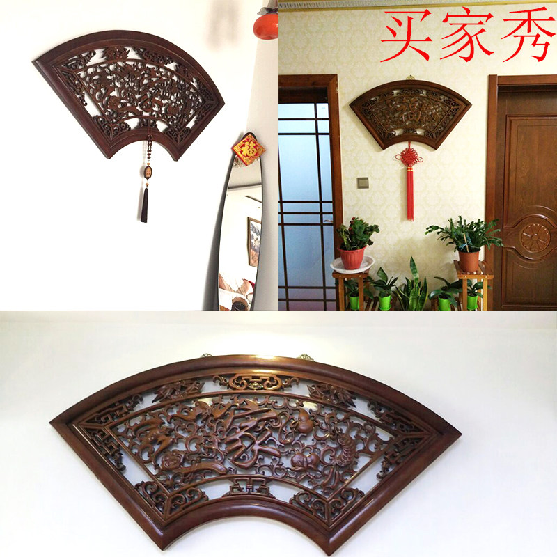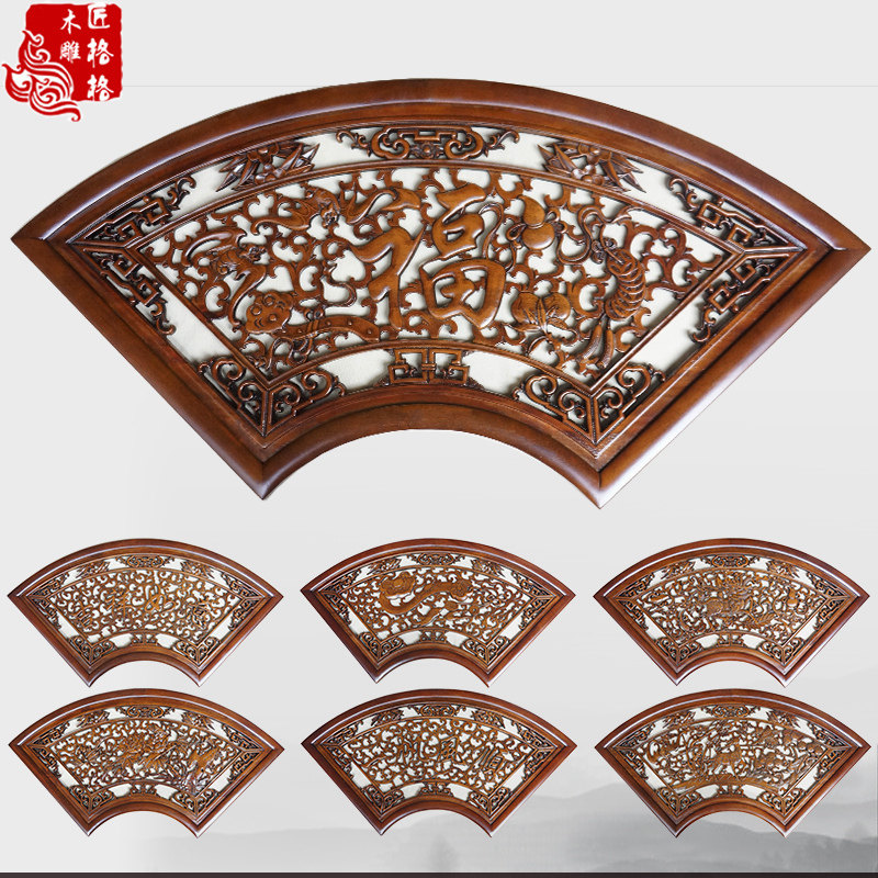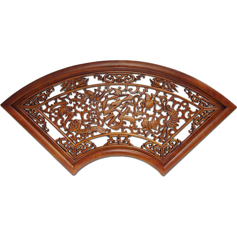 East Yang Wood Carving Pendant Wall Decoration Wood Sculpture Painting Engraving Crafts Gift Pendulum Decoration Chinese Style Furnishing Background Wall Wall-mounted Sector Fu Calligraphy
