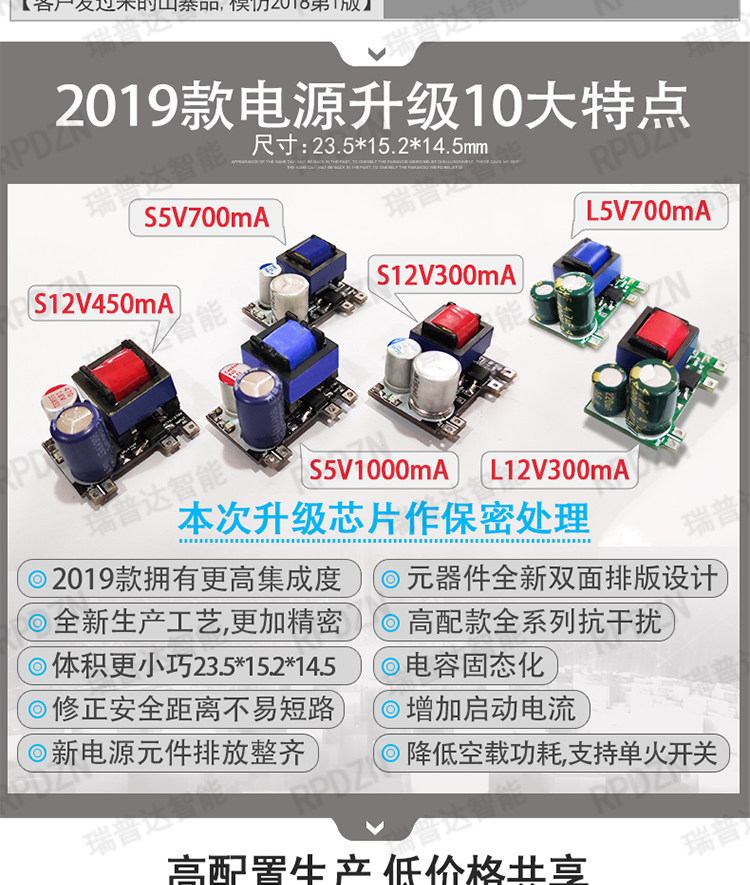 RPDZN Small volume AC-DC step-down 5V module Intelligent switching power supply module 220V to 5V isolated small power supply