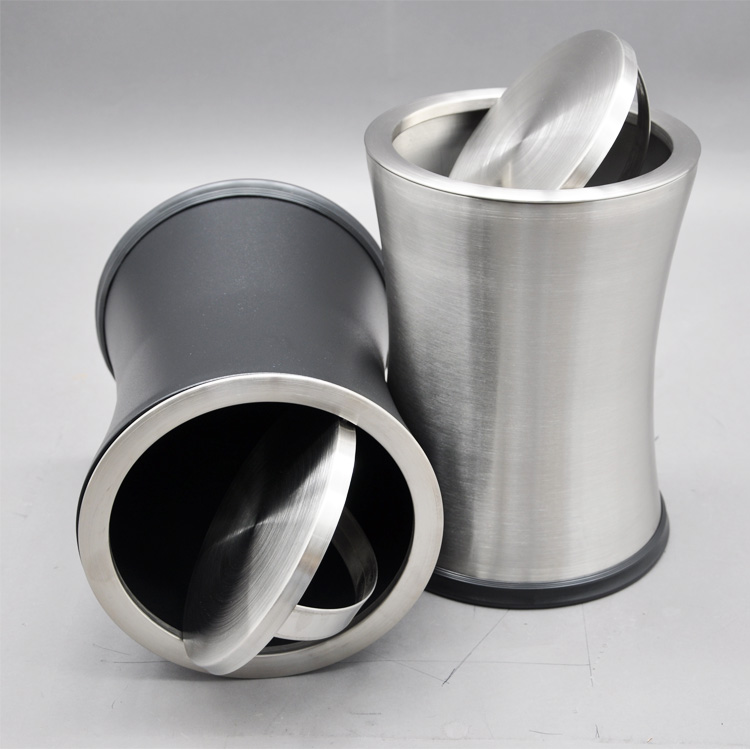 Yu Pavilion Shake Lid Trash Can Small Brute Waist Room Bucket Single Layer Fashion Creative Hotel Stainless Steel Trash Can