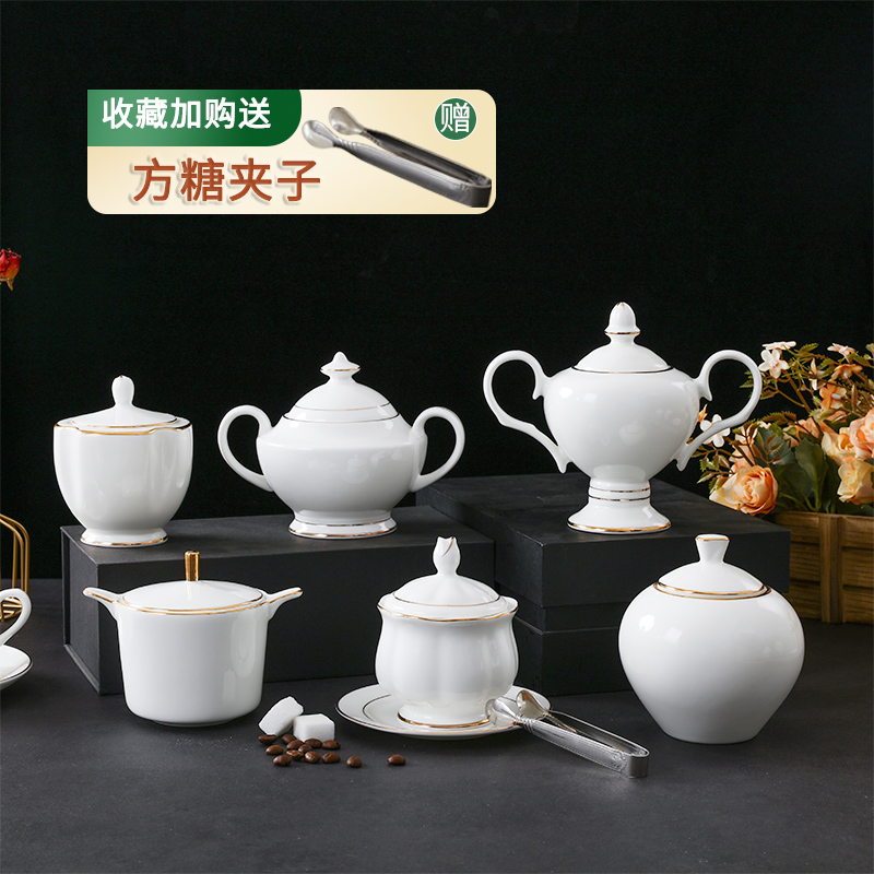 Bone China Coffee Sugar Cane with Lid English Phnom Penh Sugar Jar Sugar Cube Jar White Sugar Cup Ceramic Sugar Box Send Clip