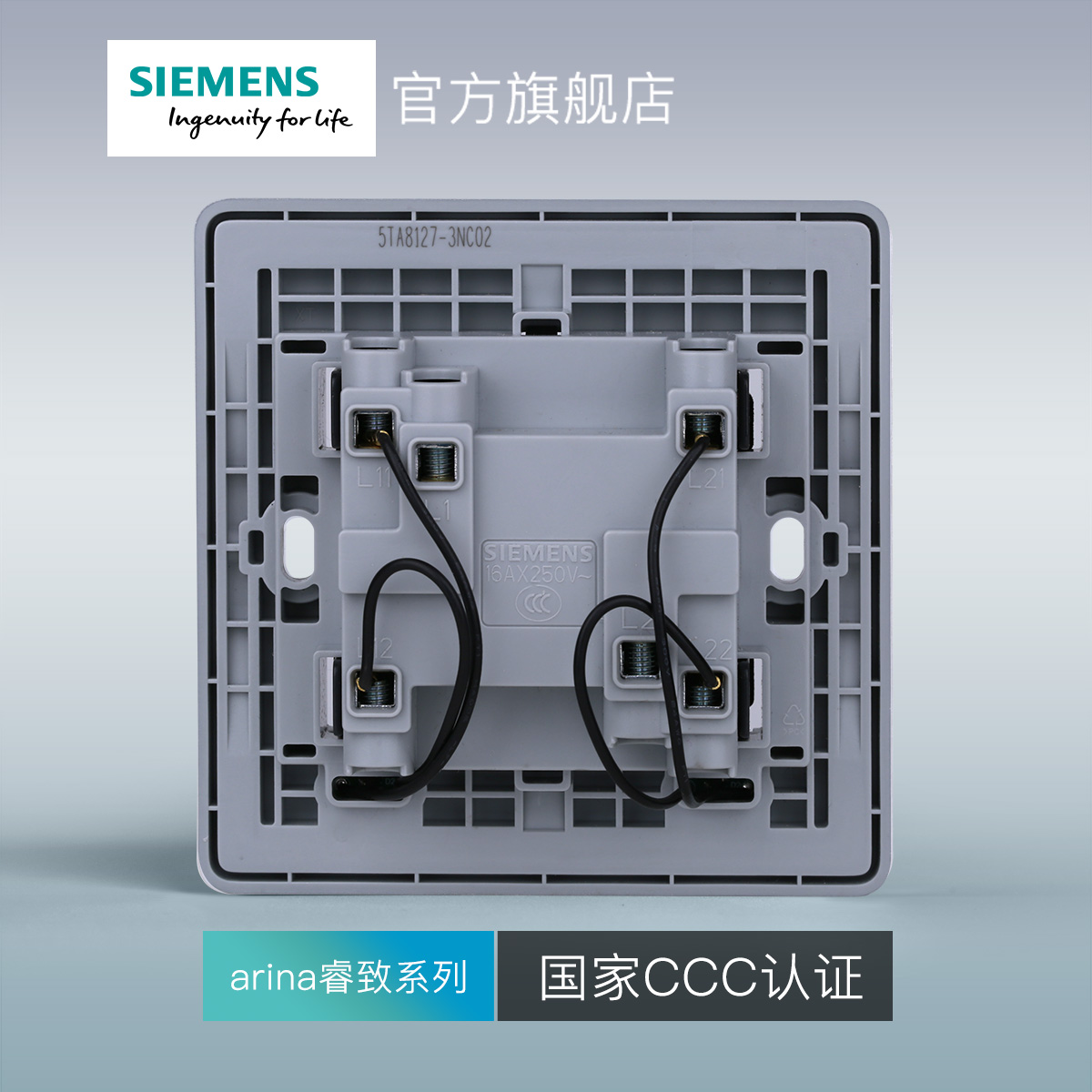 Siemens switch socket panel Ruizhi titanium silver frame 86 type two open double cut with LED official flagship store