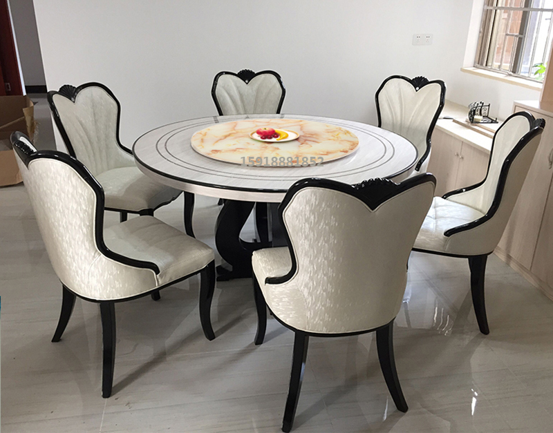 Household round table marble clip wire dining table glass turntable hotel round table tempered glass turntable furniture turntable
