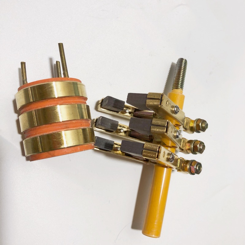 A single 3 - circuit collection ring with a carbon brush frame for 3 - way collection ring