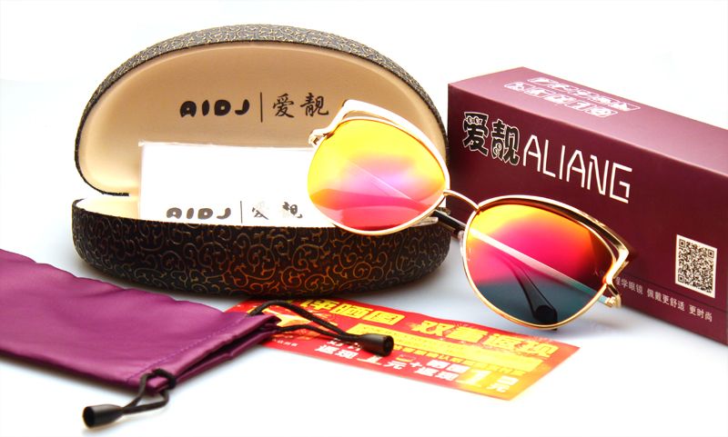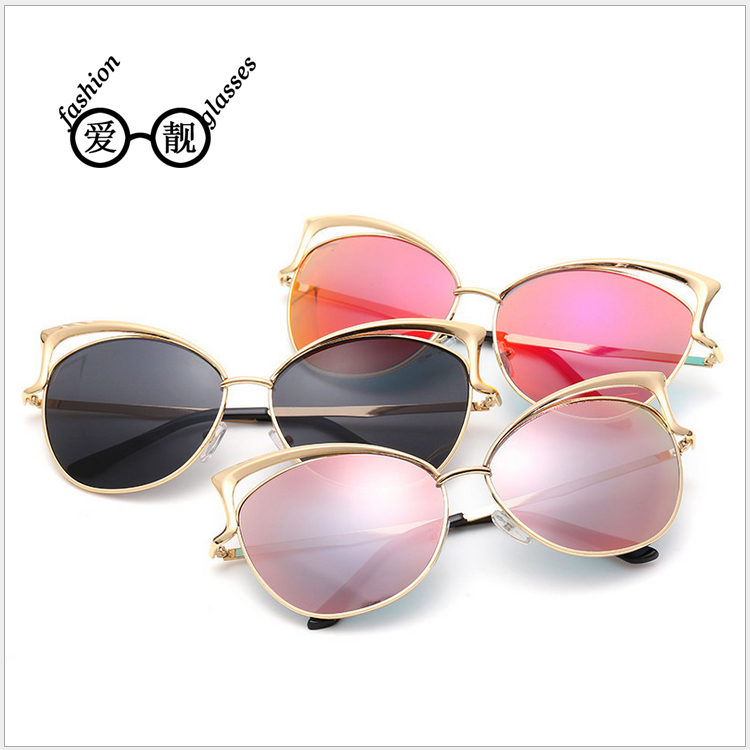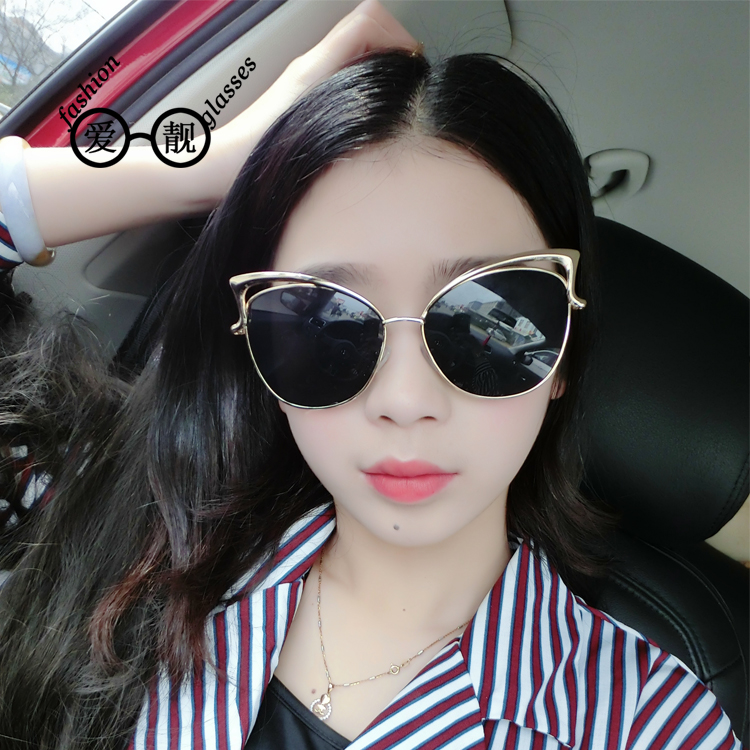 AIDJ Ai Liang European and American star net red with the same high-definition sunglasses metal cat-eye hollow reflective sunglasses female