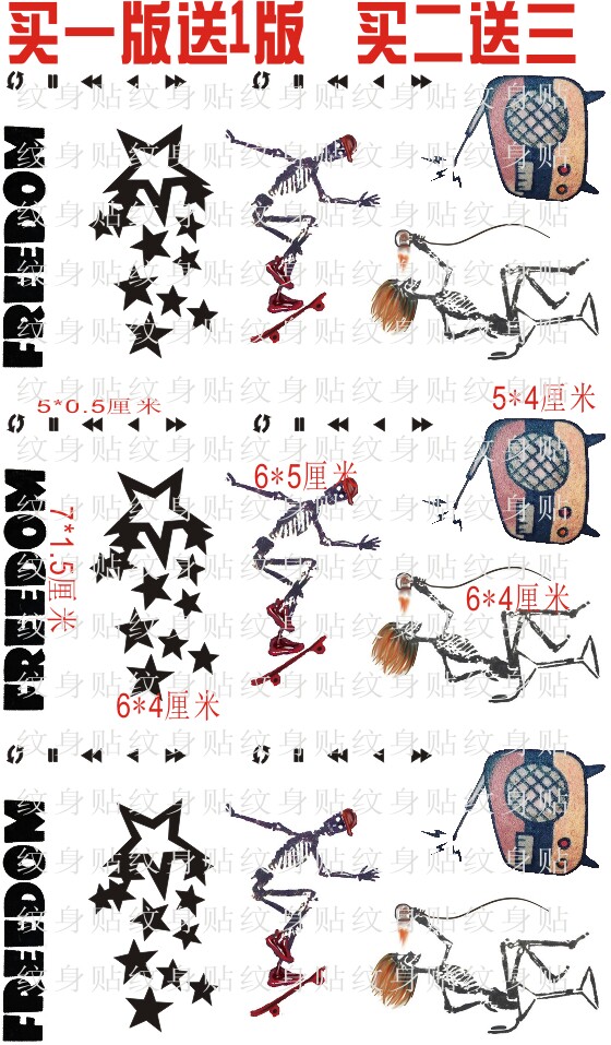 Tattoo sticker customised to make Li Hiroki tattoo sticker Skull FREEDOM The Same Waterproof Sticker Perimeter