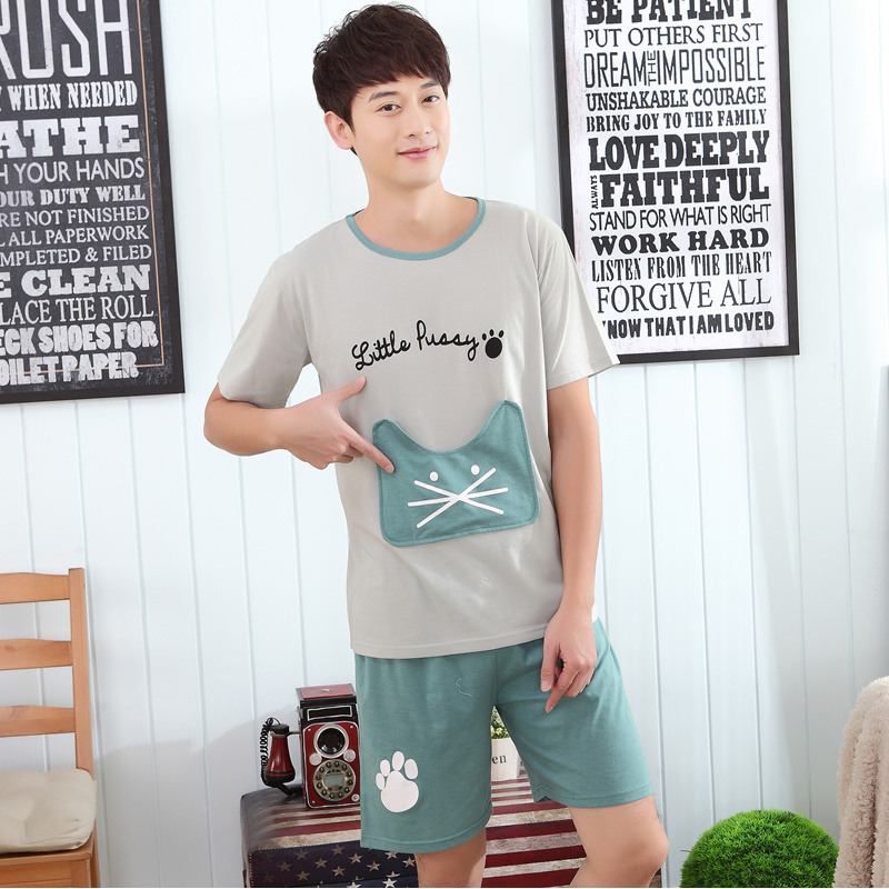 Summer short-sleeved couple pajamas cartoon youth pure cotton men's and women's cute new home service thin suit